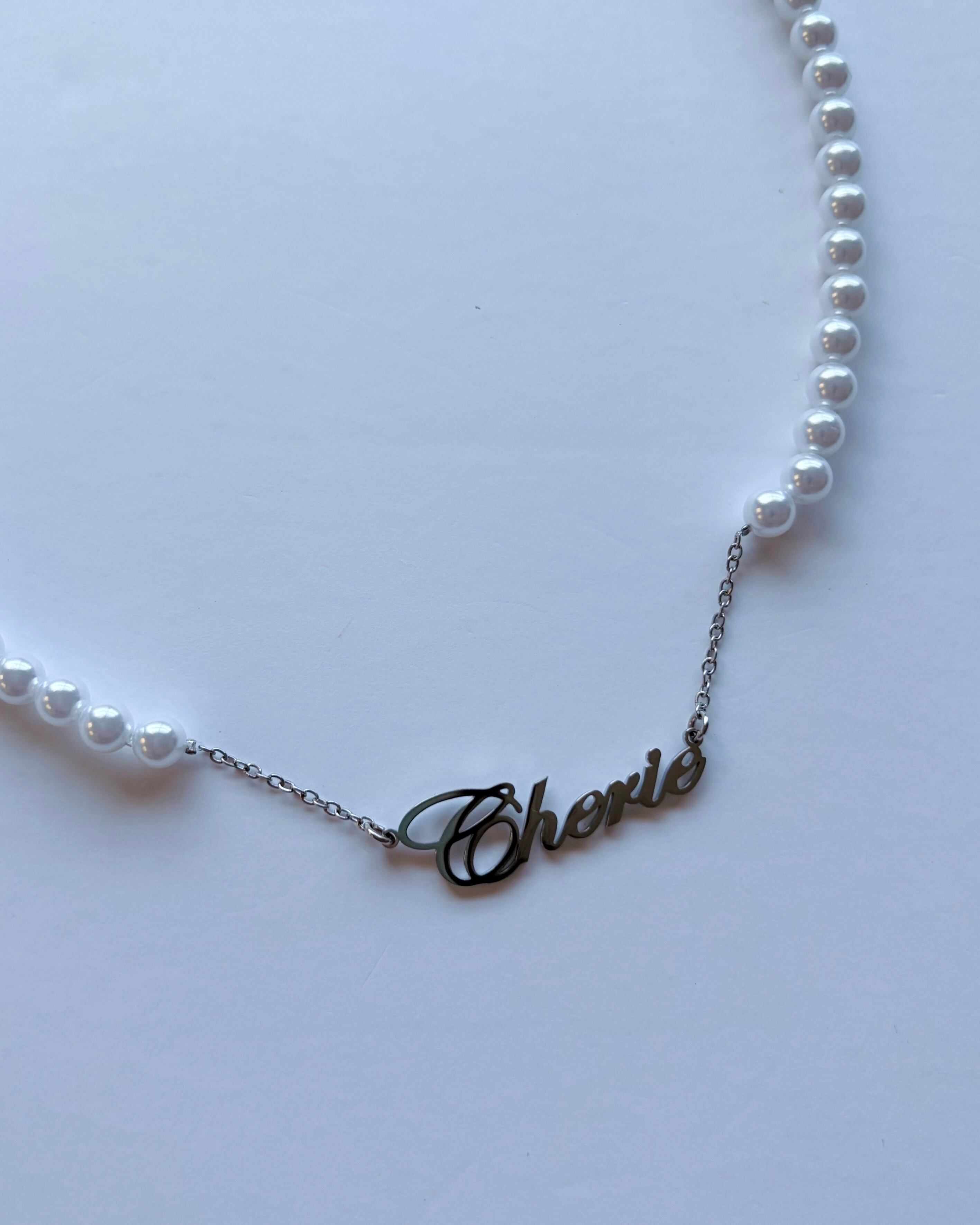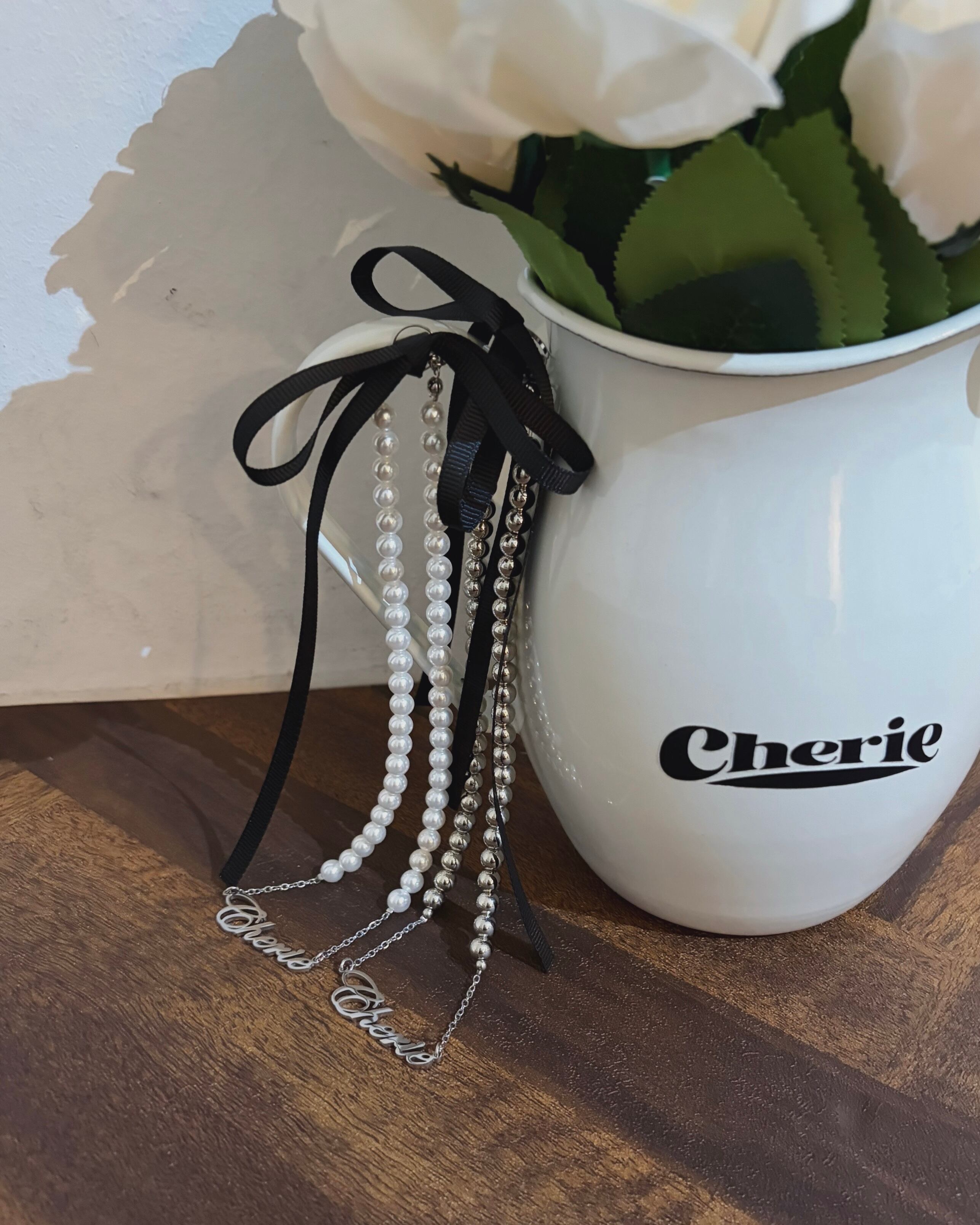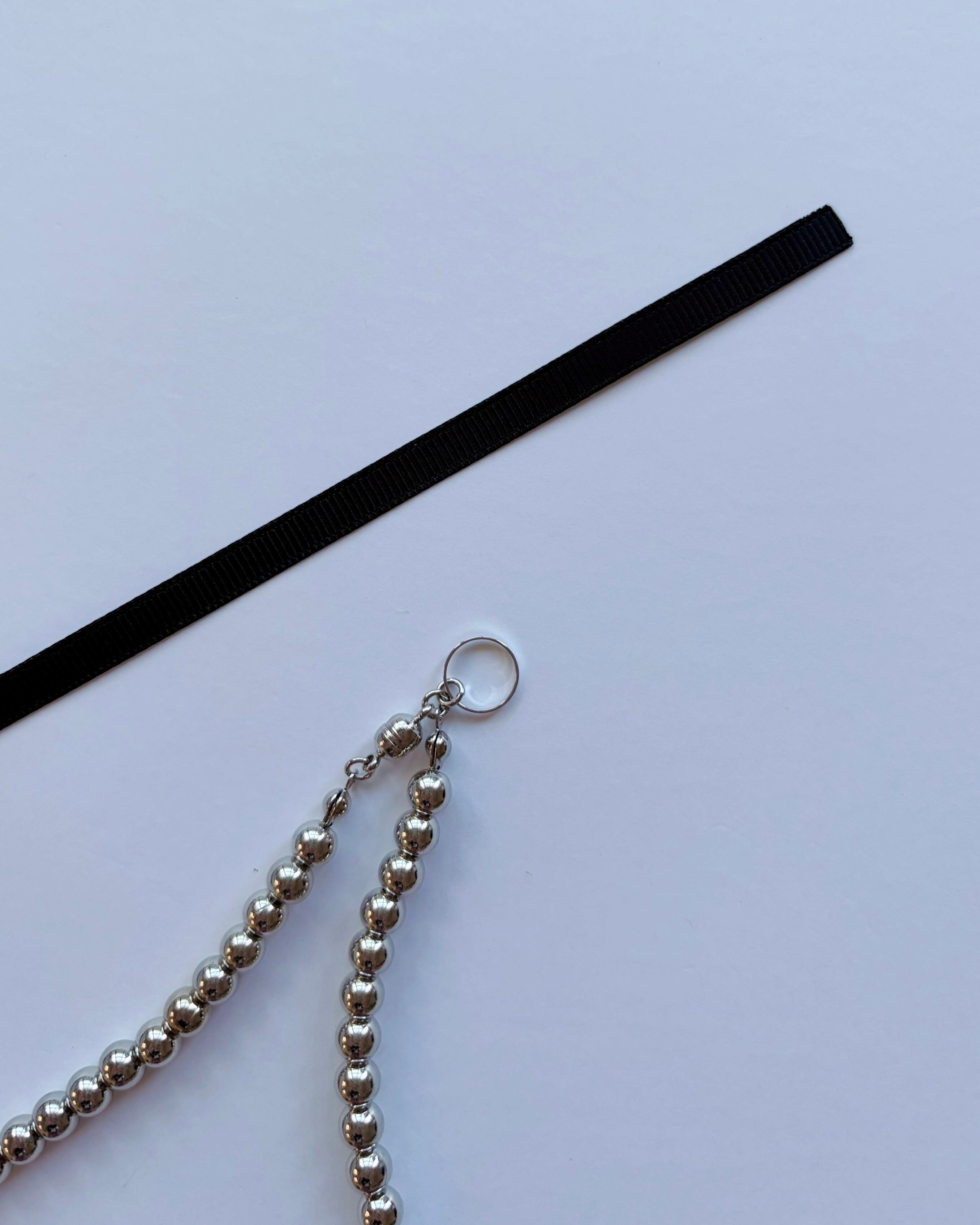 全長40cm ビーズ直径5mm ロゴチャーム横幅3.6cm