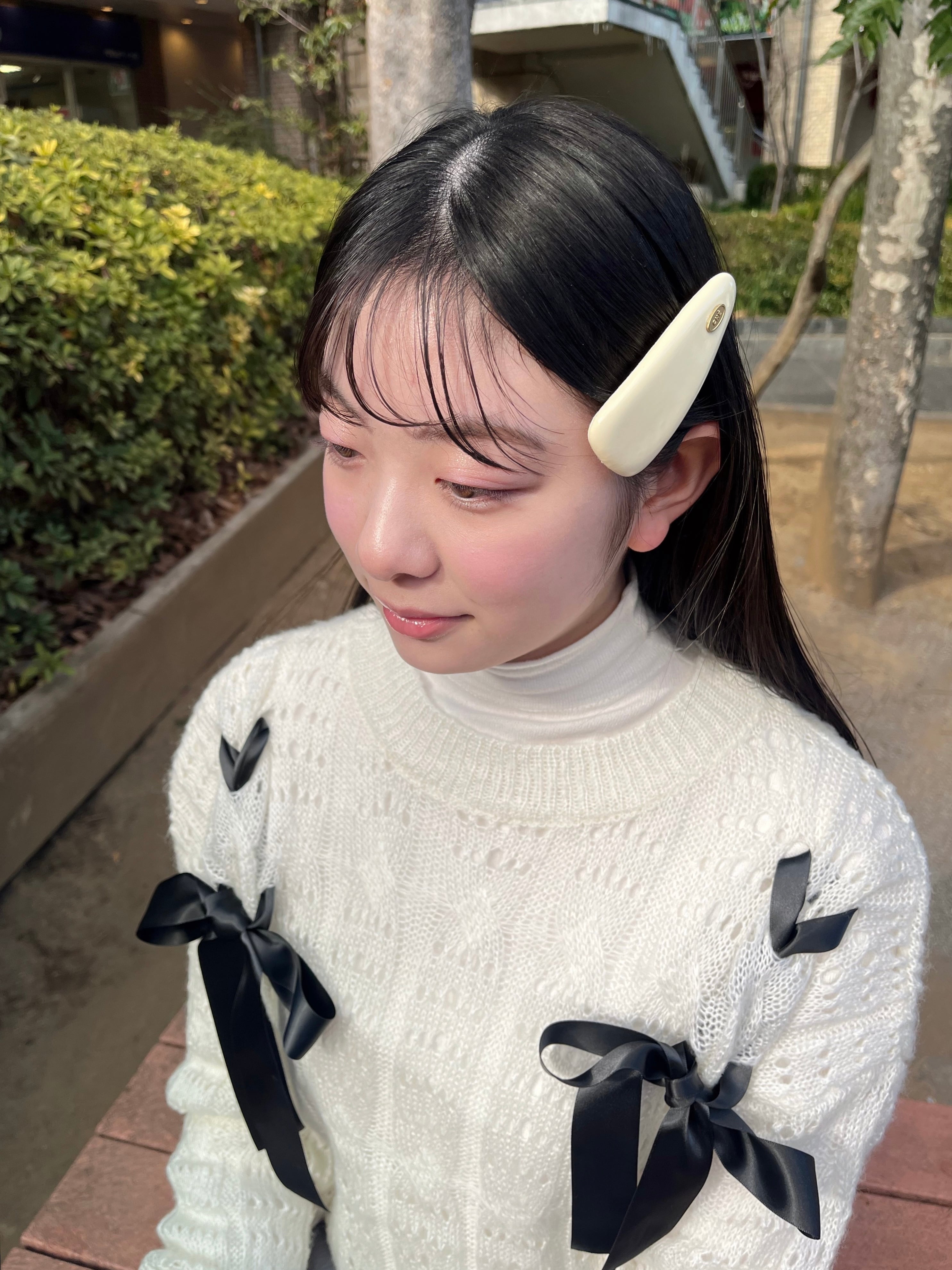 つるつるとしたエナメル風素材を使用したインパクトのあるバレッタ。